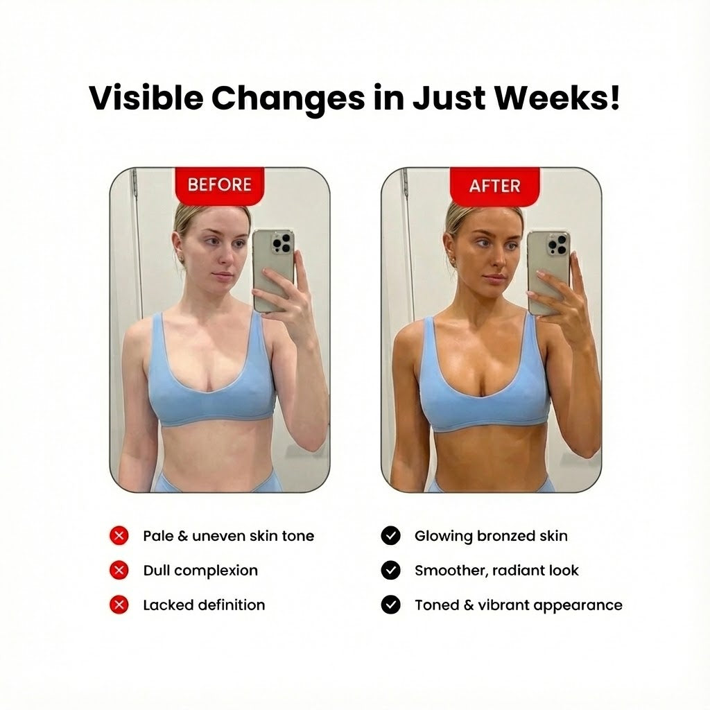Protects collagen from oxidative stress. This ensures your new "tan" looks dewy and youthful, not dry or leathery.